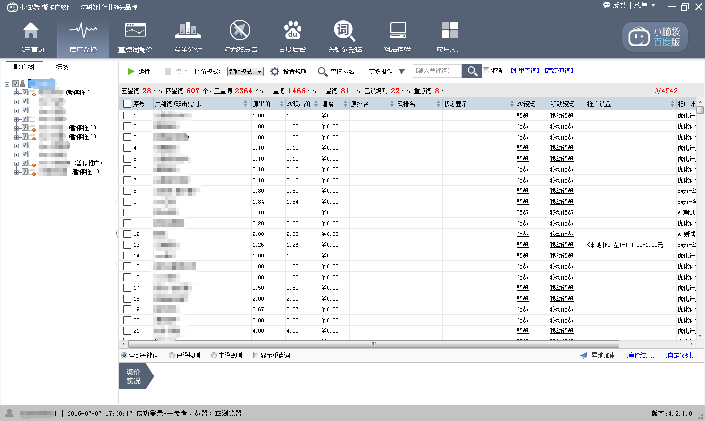 覆蓋百度、360、搜狗等國內主流的搜索引擎平臺,功能包括智能調價、重點詞監控、競爭對手分析、防無效點擊監控,關鍵詞挖掘、網站體檢等,為客戶提供更加全面的功能與服務的選擇。