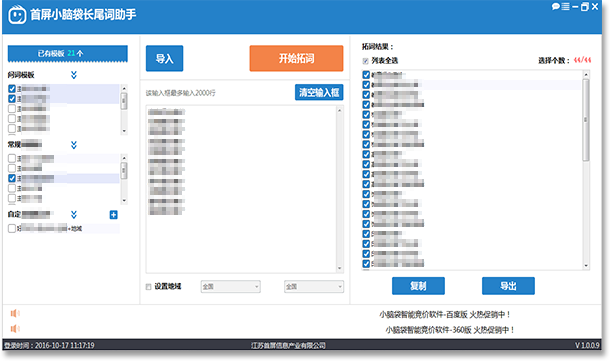 小腦袋長尾詞軟件是一款可以快速拓展關(guān)鍵詞的工具, 可以通過添加主詞,形容詞,時間詞,地域詞等進(jìn)行 批量生成關(guān)鍵詞,實現(xiàn)長尾關(guān)鍵詞全覆蓋,是競價及 網(wǎng)絡(luò)推廣優(yōu)化必備工具。