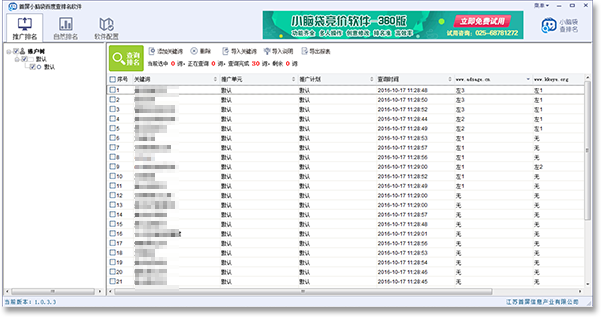 小腦袋查排名軟件(百度版)是一款可以查詢百度競 價推廣廣告排名,及SEO優(yōu)化排名的軟件,查詢速度 快,準(zhǔn)確度高,是競價及SEO優(yōu)化人員必備工具。